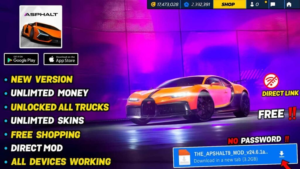 If you’re ready to experience the ultimate mobile racing thrill, then the Asphalt 9 Legends MOD APK 2025 is your ticket to high-octane excitement. Gameloft’s Asphalt series has always set the bar for mobile racing games, but this updated MOD version takes it even further — giving you unlimited money, a maxed-out garage, and a no-password easy install. Whether you’re a casual racer or a competitive speed demon, this version gives you everything unlocked from the start so you can hit the tracks without limitations.