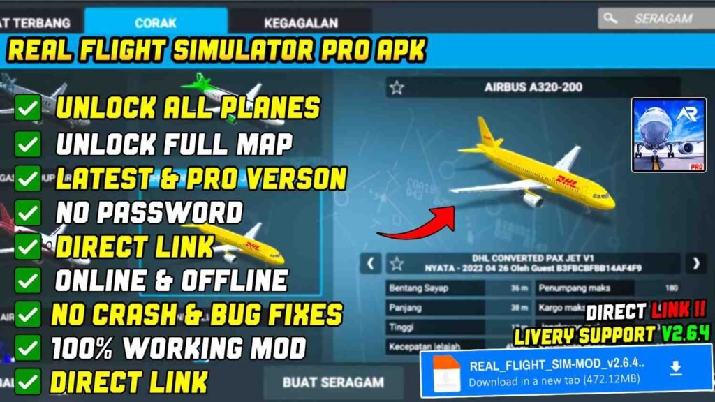 - ✈️ All Planes Unlocked – Fly commercial jets, cargo planes, and private aircraft.