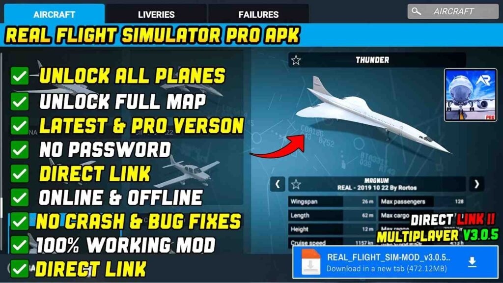 - ✈️ All Planes Unlocked – Fly commercial jets, cargo planes, and private aircraft.