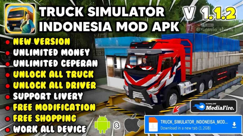 The Truck Simulator Indonesia MOD APK v1.1.2 (2025) is the best way to experience realistic trucking on Android. With unlimited money, free shopping, all trucks unlocked, and anti-ban protection, this version is perfect for fans who want everything without restrictions.